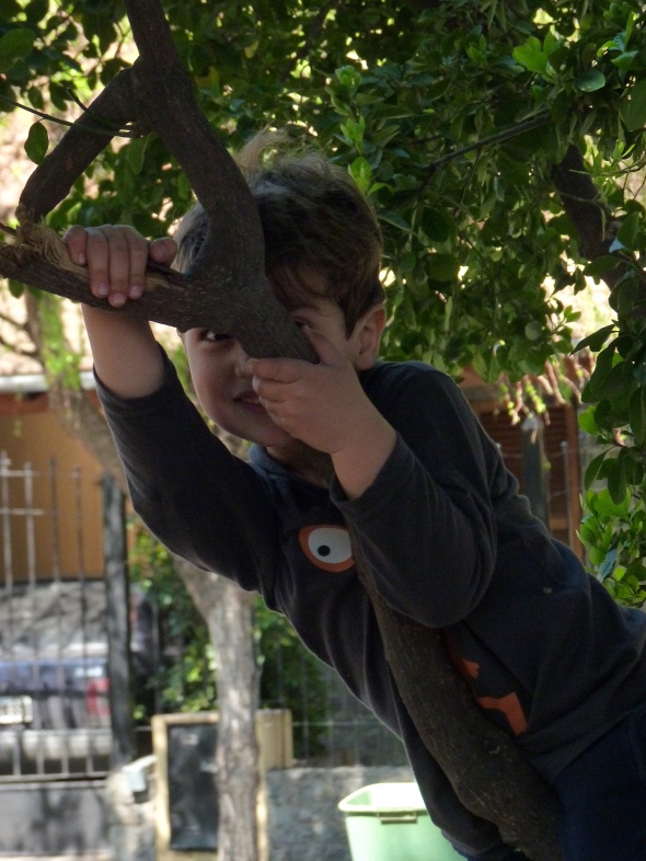 Sacamos la cámara de fotos y nos fotografiamos unos a otros. Les mostré mi cámara a los chicos, hablamos de los cuidados del lente, de las funciones básicas que tiene y cada uno hizo algunas tomas de las escenografías creadas por los amigos. Parecía que allí terminaría todo cuando se nos ocurrió una idea genial: ¡jugar a los paparazzi! No sabría decir quién fue el que tuvo la idea, ¡en verdad en el recuerdo siento que se nos ocurrió a todos al mismo tiempo!Todos éramos artistas famosos escapando de la cámara. Los chicos corrían por todo el patio intentando no salir fotografiados, riendo a carcajadas, radiantes. Después bajamos las fotos a la compu para ver los resultados del juego. Fue un verdadero éxtio y así es como este grupo encontró su nombre. La mamá de uno de los nenes, que tiene otro hijito de 2 años también me comentó sobre el juego diciéndome que el chiquitín pide una y otra vez jugar a «papazis». Ahora todas las veces hay que jugar un ratito a los paparazzi en el momento de juego libre.
