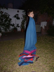 Aquel primer viernes, entonces, extendimos una alfombra mágica en el suelo (un mantel de picnic muy colorido) y nos fuimos volando al mundo de los cuentacuentos. Pero no hicimos tan largo viaje para escuchar una historia, sino para inventar la propia. Usamos tarjetones de imágenes como disparador de ideas (del juego Inventa Cuentos, de Pacopaquito diácticos) y surgieron cuentos breves, casi poéticos y sinceramente desopilantes. Luego vimos en la computadora imágenes de escenografías fantásticas y finalmente cada uno armó una escena de su cuento usando todo tipo de materiales.