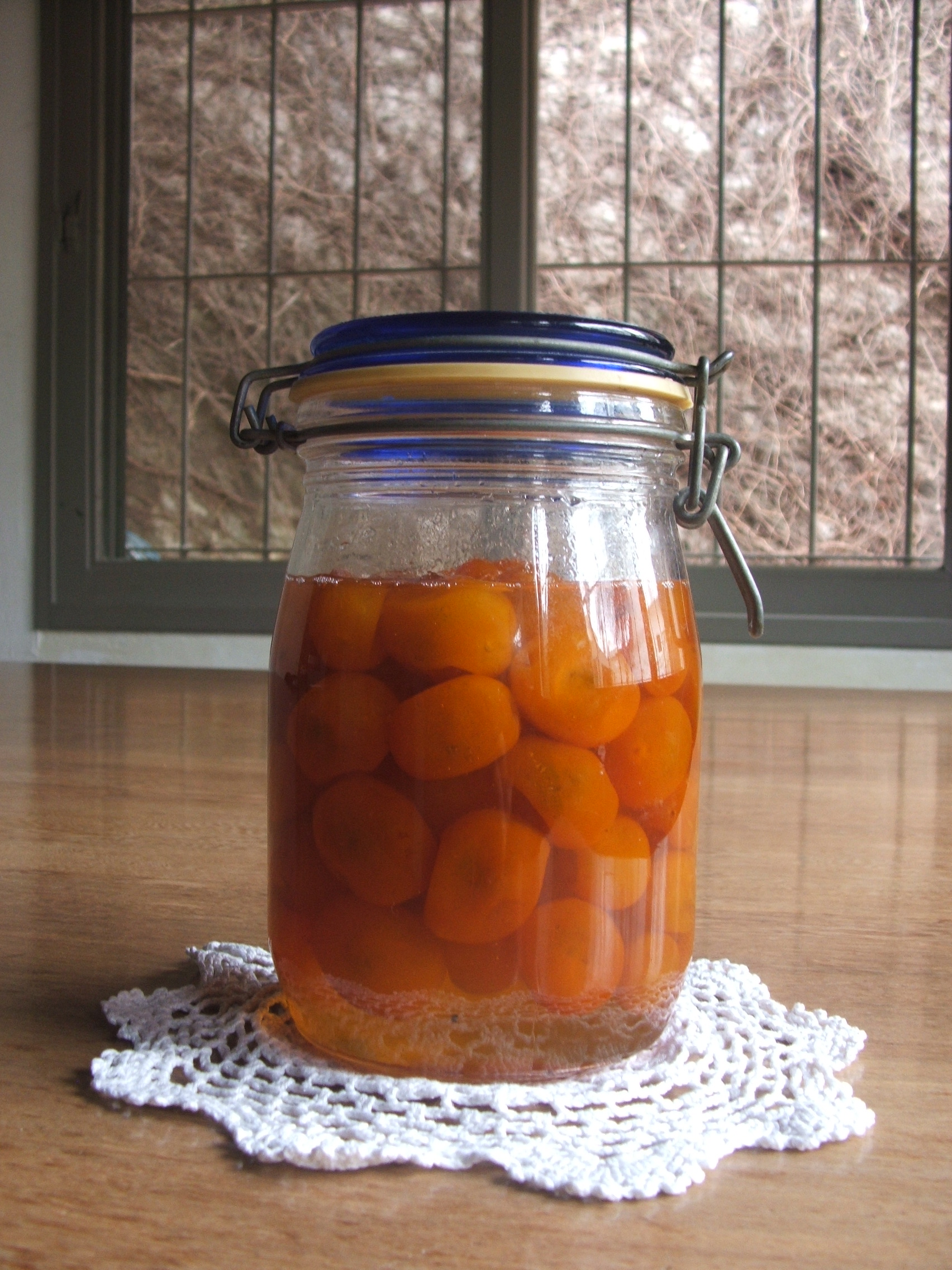 Pude observar con inmensa ternura que lo hacían tan alegremente como yo cuando era como ellos. Después los lavé, pinché y cociné hasta obtener mi preciado frasco de quinotos en almíbar.