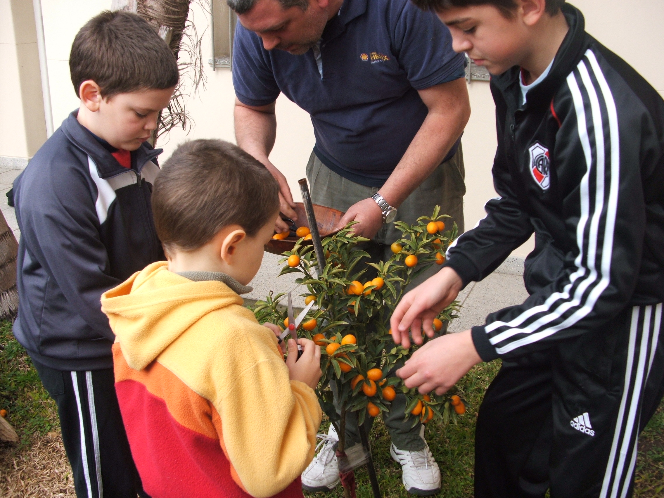 Un par de semanas después les di un bowl de plástico a mis niños para que cosecharan los quinotos para hacer dulce.