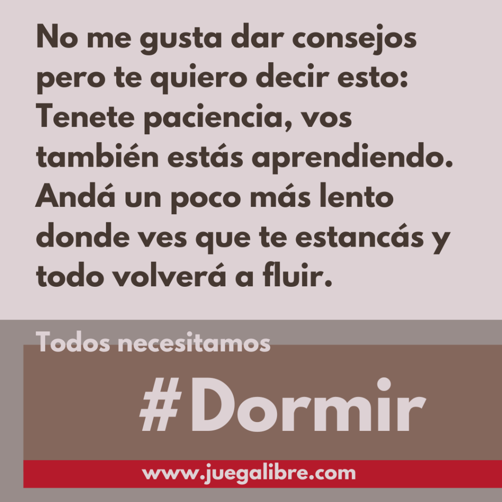 Ayer vino una familia a un asesoramiento individual porque les está costando una locura dormir a su pequeñito de 17 meses. Antes de que llegaran, repasé internamente mis conocimientos acerca del dormir en la primera infancia. Luego, los dejé a un lado y abrí la puerta lo más despojada posible de mis conocimientos previos. Siempre podemos soltar un poco más para acercarnos a nuestro ser y estar al natural. Estoy convencida de que este, ya de por sí, es el mayor servicio que podemos brindar a nuestros consultantes. Y el momento de abrir la puerta es vital, ya que en general establece el tono del encuentro (en el libro Un Zorrito Salvaje comento la importancia de este momento en más detalle en el capítulo Barro y Limpio).